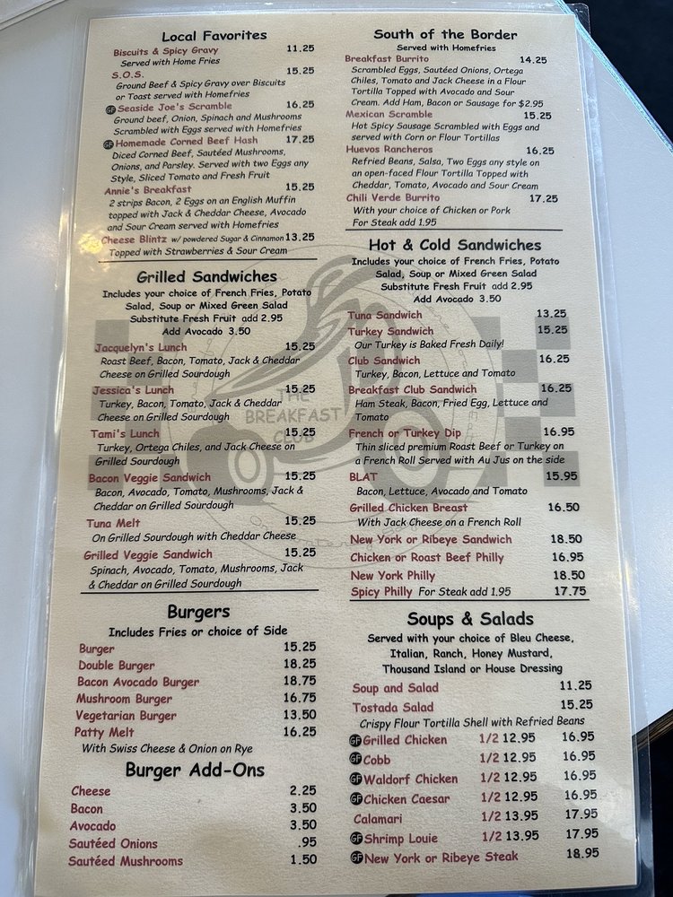 Welcome to The Breakfast Club Seaside, a charming diner nestled in the heart of Seaside, California. Known for its delectable breakfast and brunch offerings, this eatery has quickly gained a devoted following among locals and tourists alike. The menu features mouthwatering 2 Egg Breakfasts, including options like the hearty New York Breakfast with steak or the flavorful Chorizo Breakfast, all accompanied by homefries and generous sides.